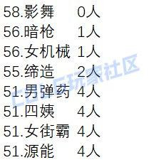 总计58个职业(所有奶职业除外),