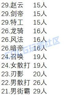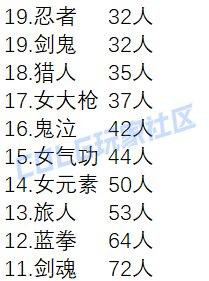 以暗枪影舞专家等代表职业均有少量增加